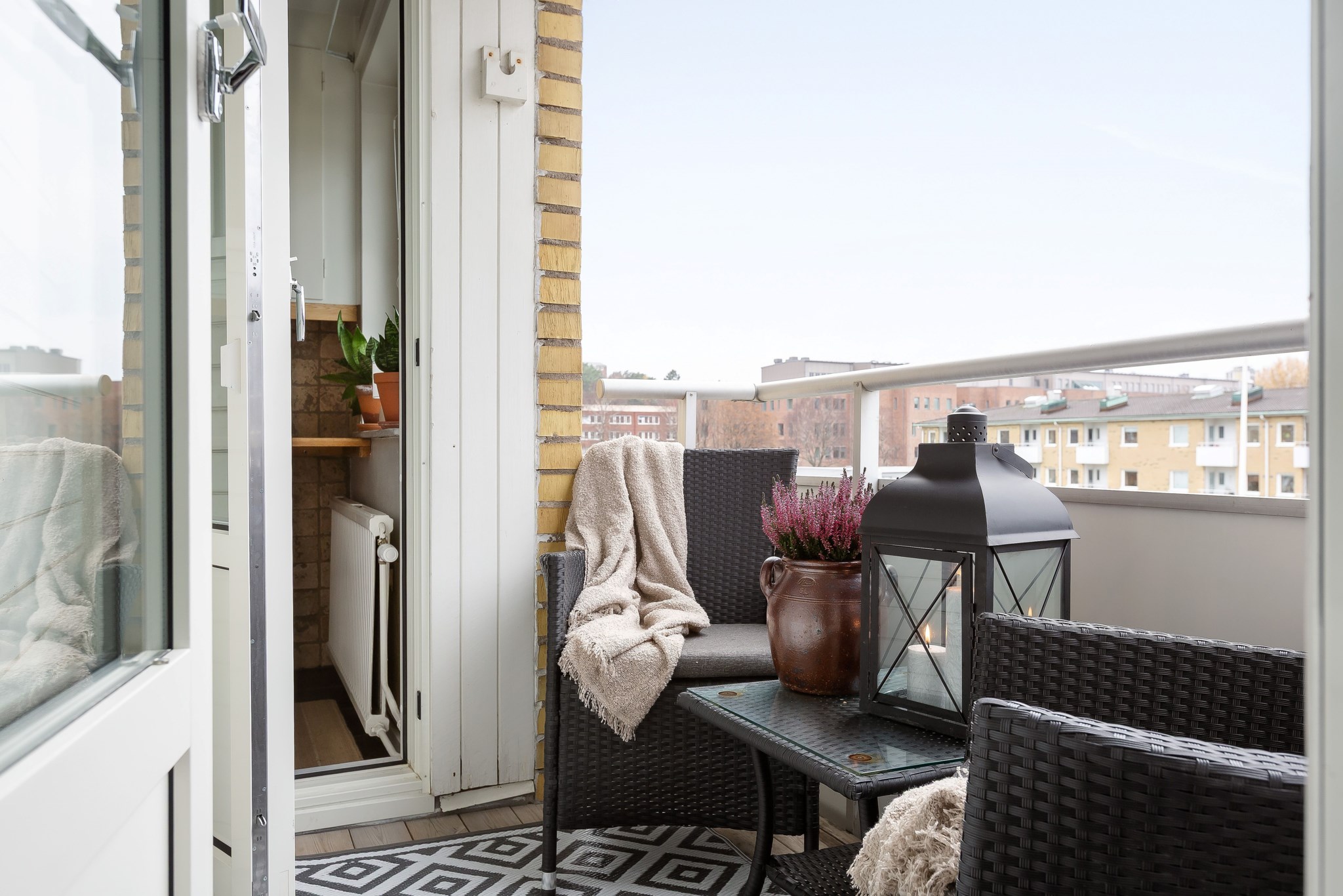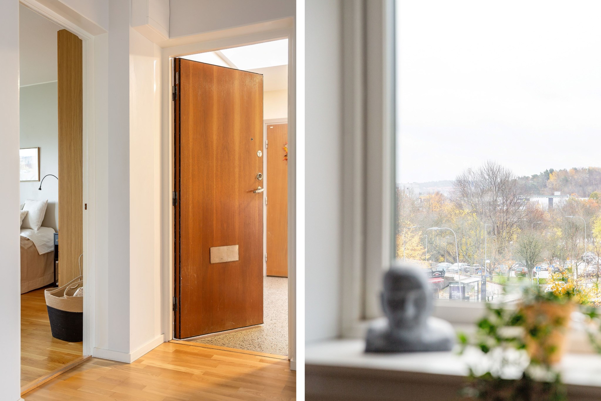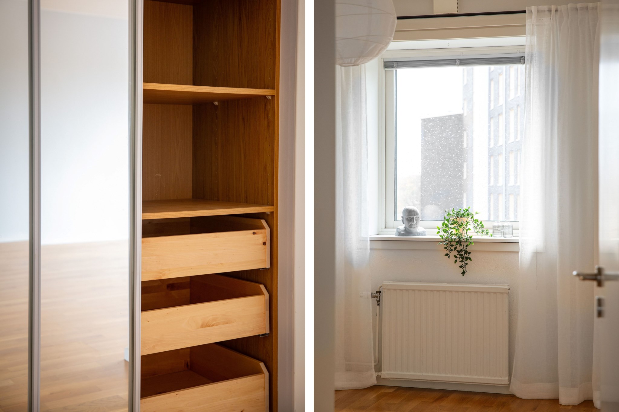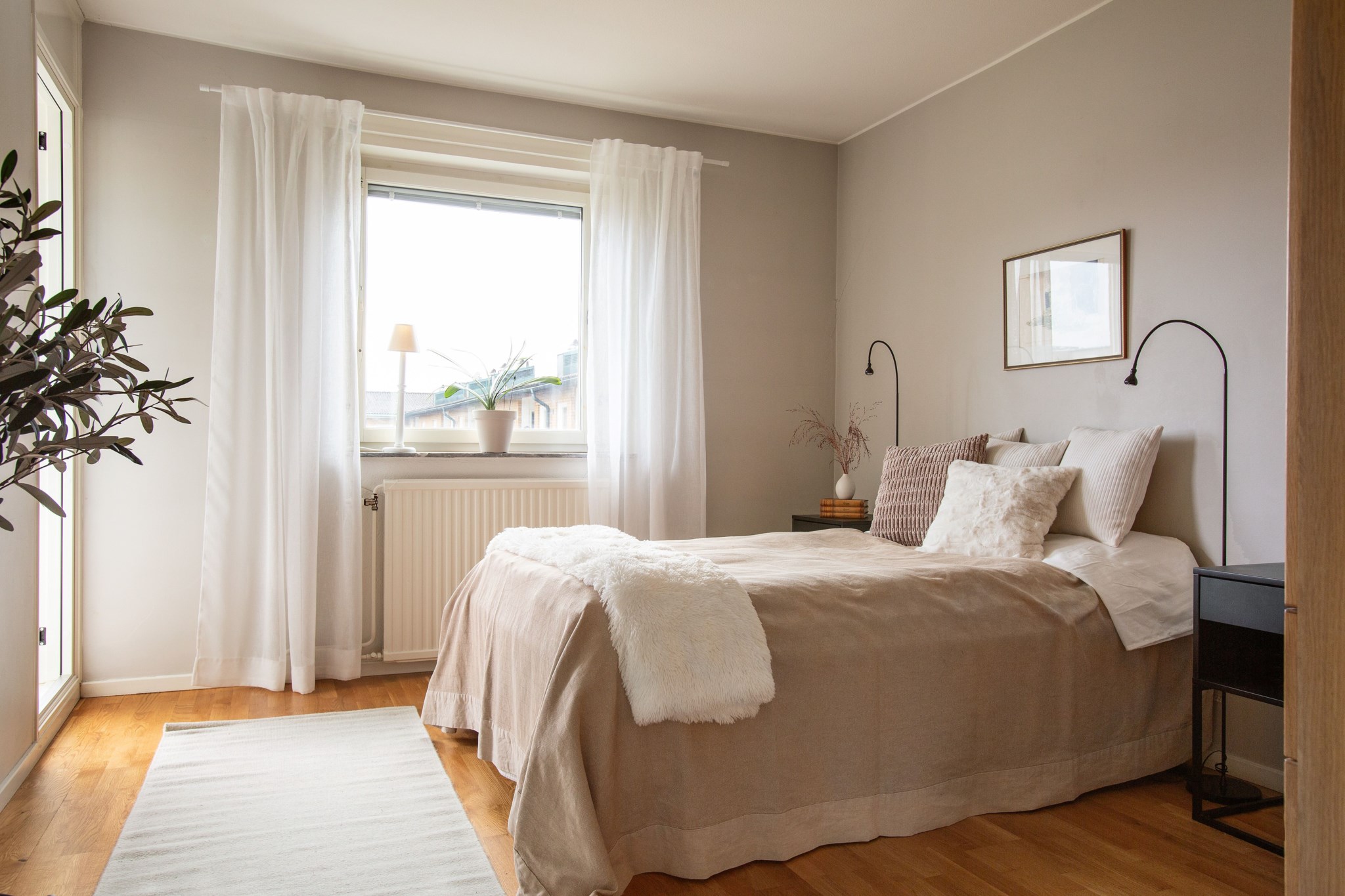 Lägenheten har två stora sovrum som båda är väl tilltagna och enkla att möblera. Här finns utrymme för både dubbelsäng och förvaring, vilket skapar en lugn och privat atmosfär. En trevlig detalj med denna lägenhet är balkongen, som nås från både kök och ett av sovrummen. Detta skapar flexibilitet och gör det enkelt att ta ut kaffekoppen för mysiga frukoststunder i solen eller njuta av kvällsmaten under bar himmel.