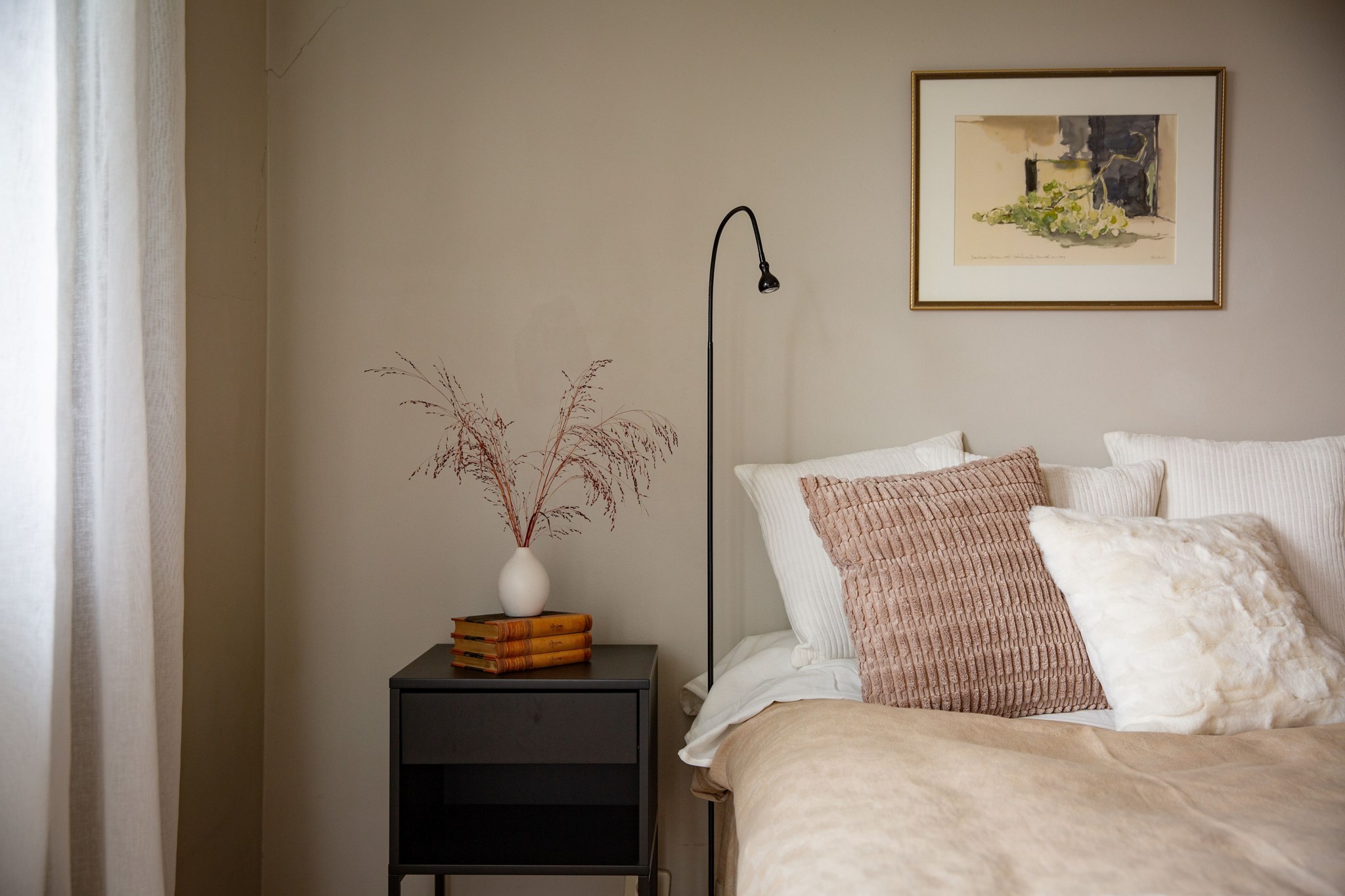 Parkettgolv och målade väggar. Plats för avhängnig i rymlig garderob.